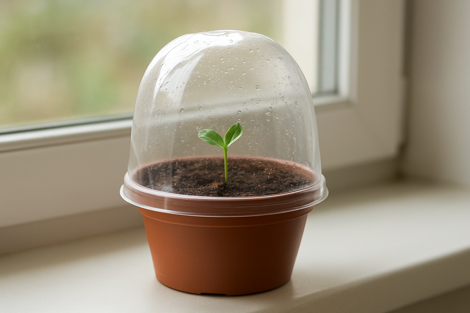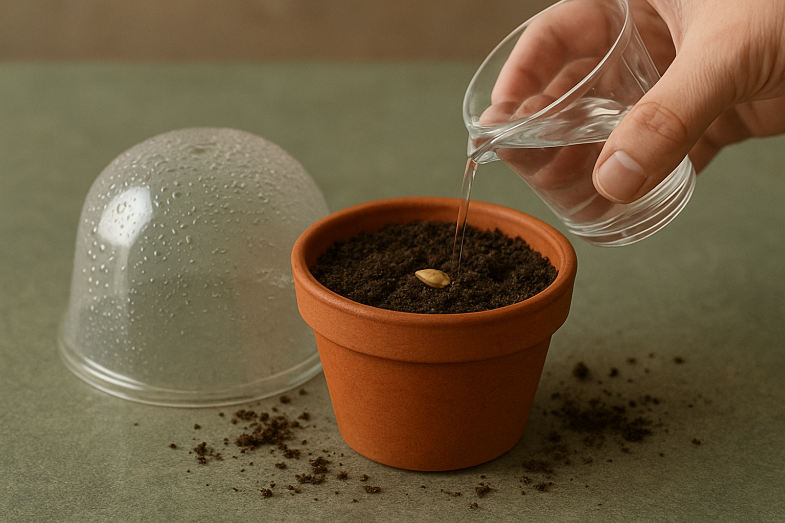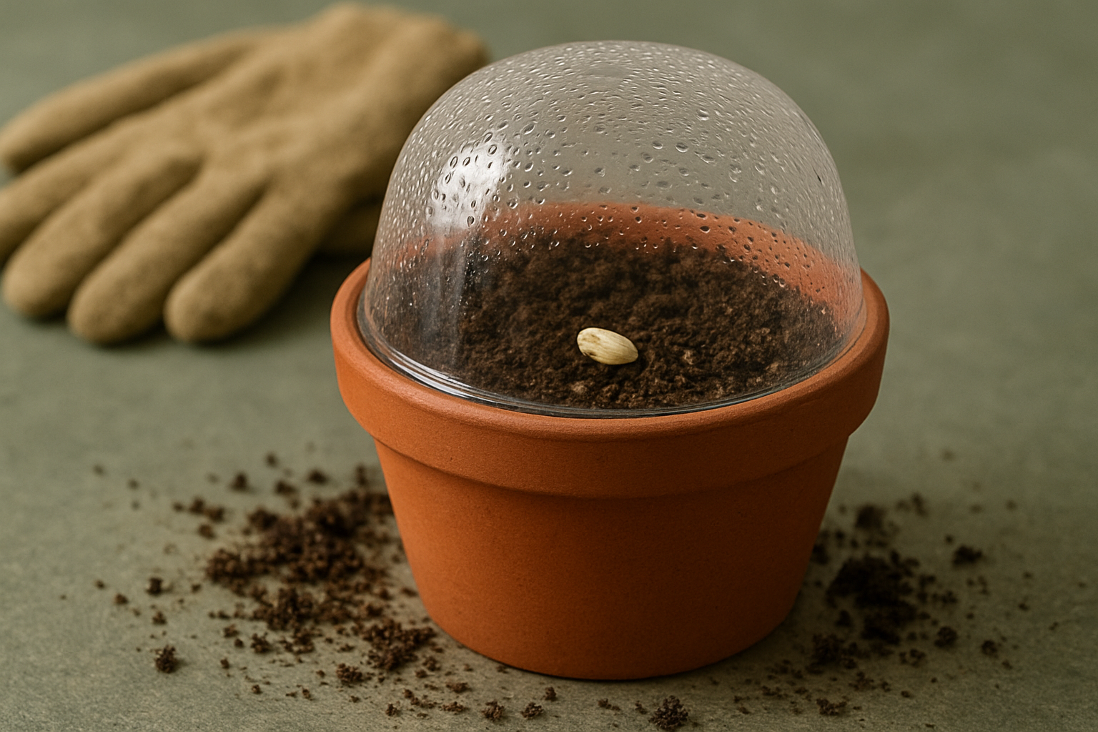 Cover the pot with a glass jar, reused container, or humidity dome to create a greenhouse effect and boost germination.
