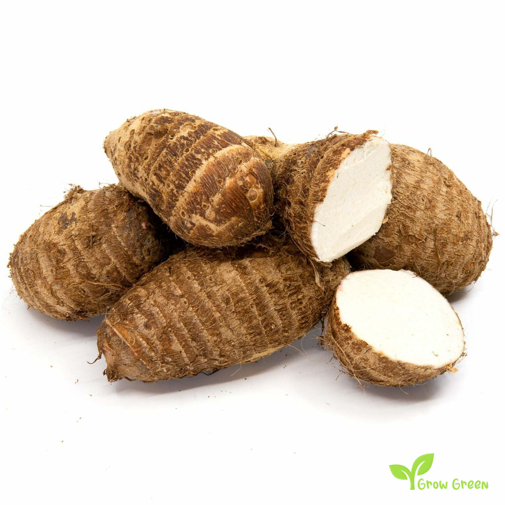 The plant is often cultivated in humid, lowland tropical regions, where it is a staple carbohydrate crop in many areas. Closely related to Taro (Calocasia Esculenta), but with smaller corms, it is easier to grow because it is hardier than taro; can grow on lighter, poorer soils; and succeeds with less rainfall and lower temperatures.